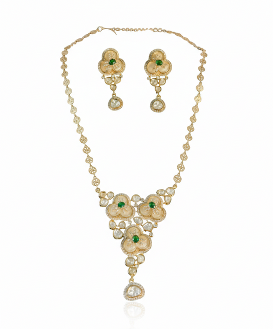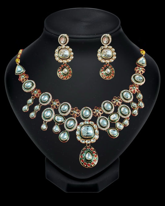 Ravya Ruby & CZ Stone Designer Necklace Set