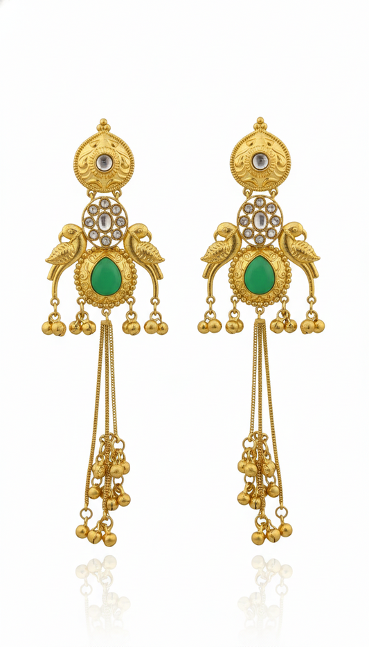 Royal Green & Gold Kundan Chandbali Earrings