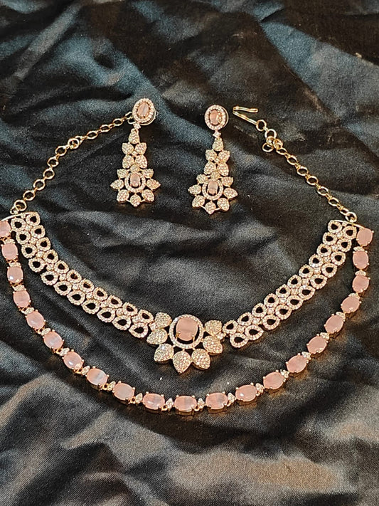Elina Blush Pink & CZ Stone Layered Necklace Set