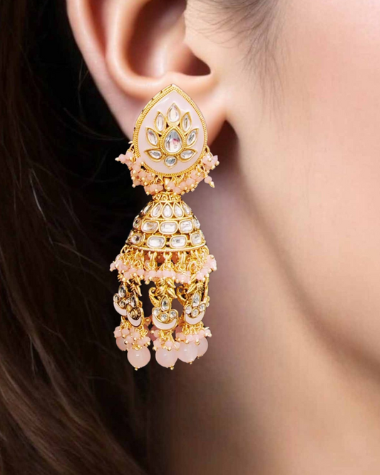 -45% OFFPink & Gold Kundan Jhumka Earrings