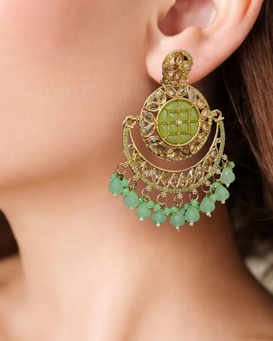 -49% OFFPink & Green Kundan Jhumka Earrings