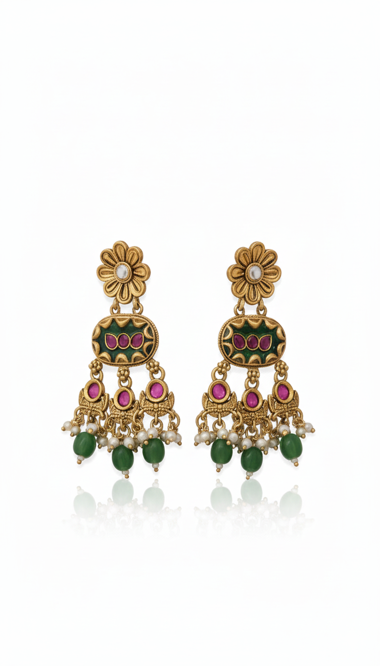 - Ruby & Green Stones: Iconic combo for a regal Indian look.